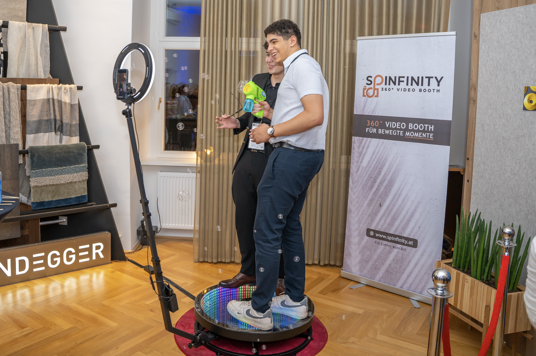 Entdecke Spinfinity – Deine erste Wahl für maßgeschneiderte Photo- & Videobooth-Erlebnisse, perfekt abgestimmt auf die Bedürfnisse deines Unternehmens. Ob für Firmenfeiern, Messen oder exklusive Events: Mit Spinfinity erhältst du nicht nur eine attraktive Event-Lösung, sondern ein wirkungsvolles Werkzeug zur Markenstärkung. Durch interaktive und fesselnde Erlebnisse – vom 360-Grad-Video bis hin zum Walk-In-Magazine-Cover – schafft Spinfinity bleibende Verbindungen zwischen deiner Marke und deinen Zielgruppen. Lass dich von der innovativen Welt von Spinfinity inspirieren, in der jedes Event zu einer einzigartigen, teilbaren Geschichte wird.