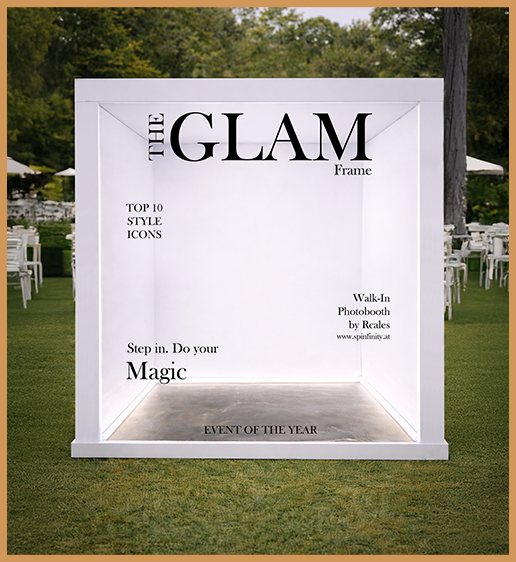 Die 360 Grad Videobox sowie der Walk-In-Magazine Photobooth sind die perfekte Ergänzung für jedes Event.